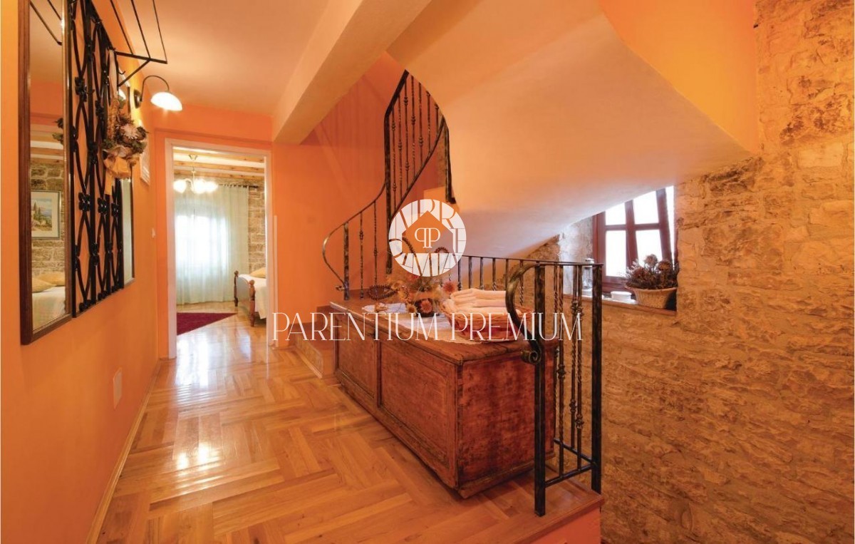 Bivalna površina te tipične istrske kamnite hiše je 193,47m2, poleg nje pa je naprodaj kmetijsko in urbanizirano zemljišče v skupni izmeri 6.253m2.