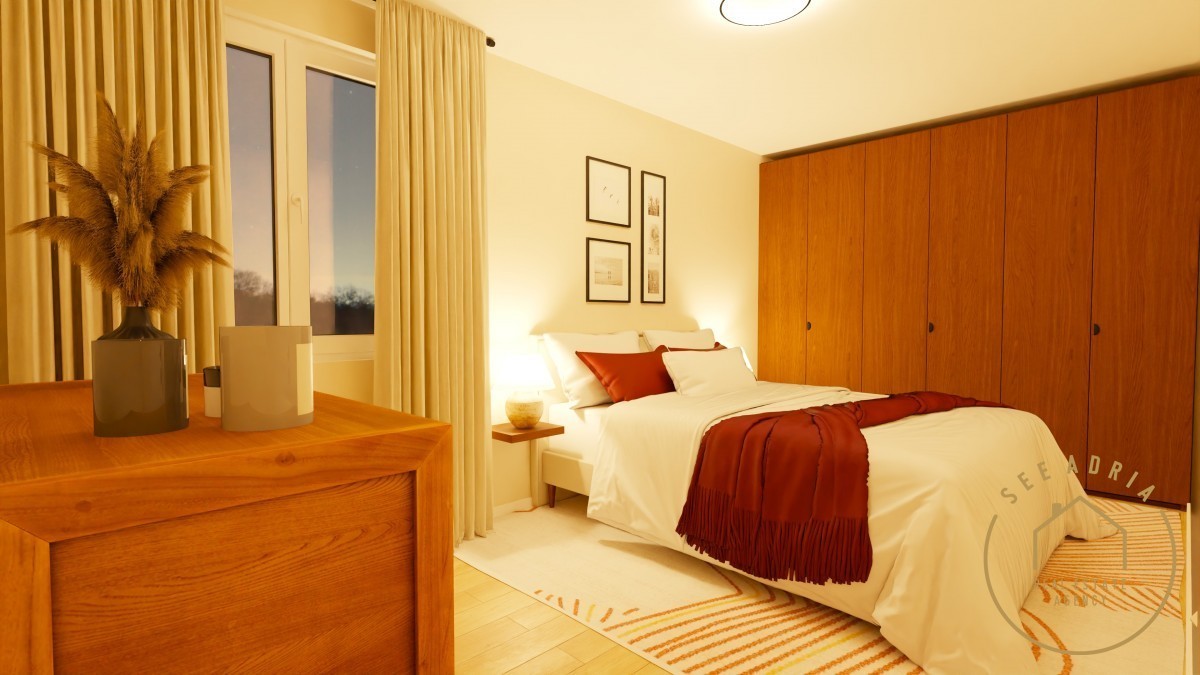 2 spalnici, kopalnici in pokriti terasi. Stanovanju pripada shramba in parkirno mesto.