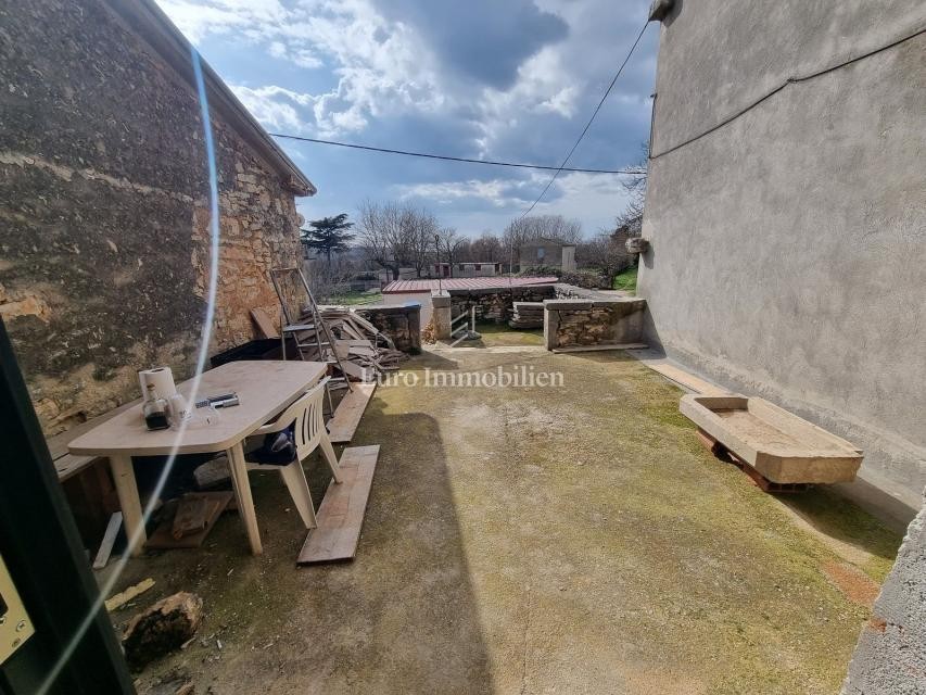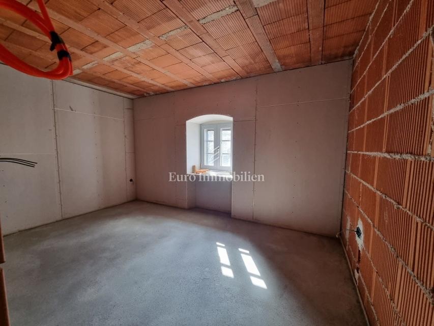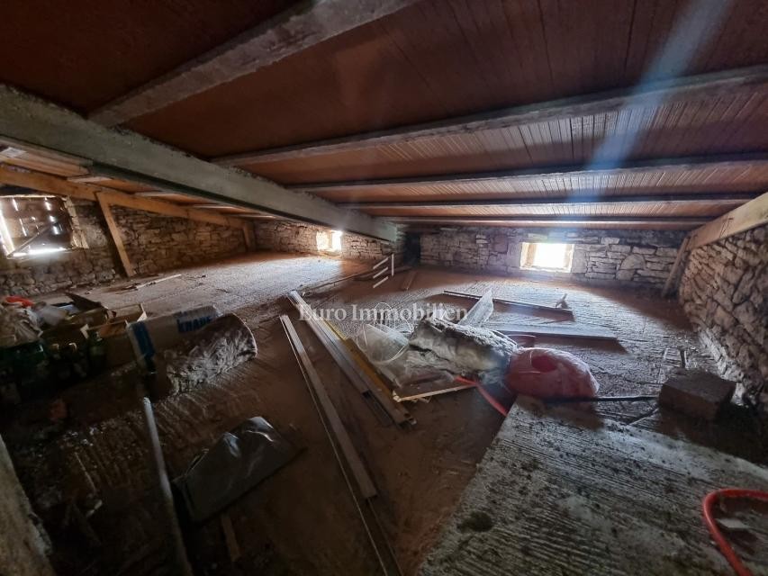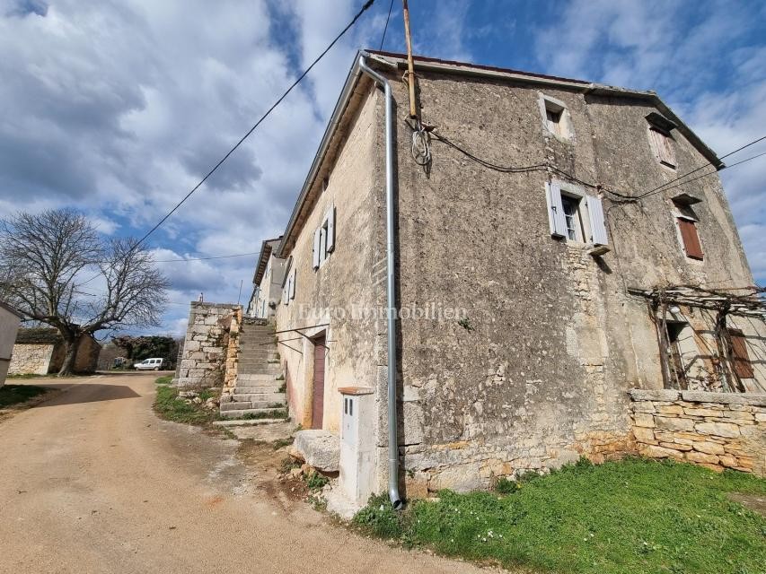 Avtohtona kamnita hiša se nahaja v mestecu 3,5 km od Višnjana. V celoti je bila prenovljena streha, žlebovi, medetažne konstrukcije, elektro in vodovodne inštalacije, glazure (tlaki), zunanje pohištvo s komarniki in vrati, vgrajena prva faza za klimo, izolirane vse stene in obložene z gips ploščami, izkop in priprava. za spajanje je bila na hiši izvedena greznica. V ceno so vključene tudi pipe, laminat in ploščice. Hiša ima tudi dimnik. Sestavljata jo dve gostilni v pritličju, ki nista bili prenovljeni in imata ločena vhoda. Zunanje kamnite stopnice vodijo v prvo nadstropje, kjer je prostorna terasa in vhod v prvo nadstropje, ki je sestavljeno iz dnevne sobe, kuhinje in jedilnice ter dveh spalnic z eno kopalnico in pralnico. V visokem podstrešju je še tretja spalnica.