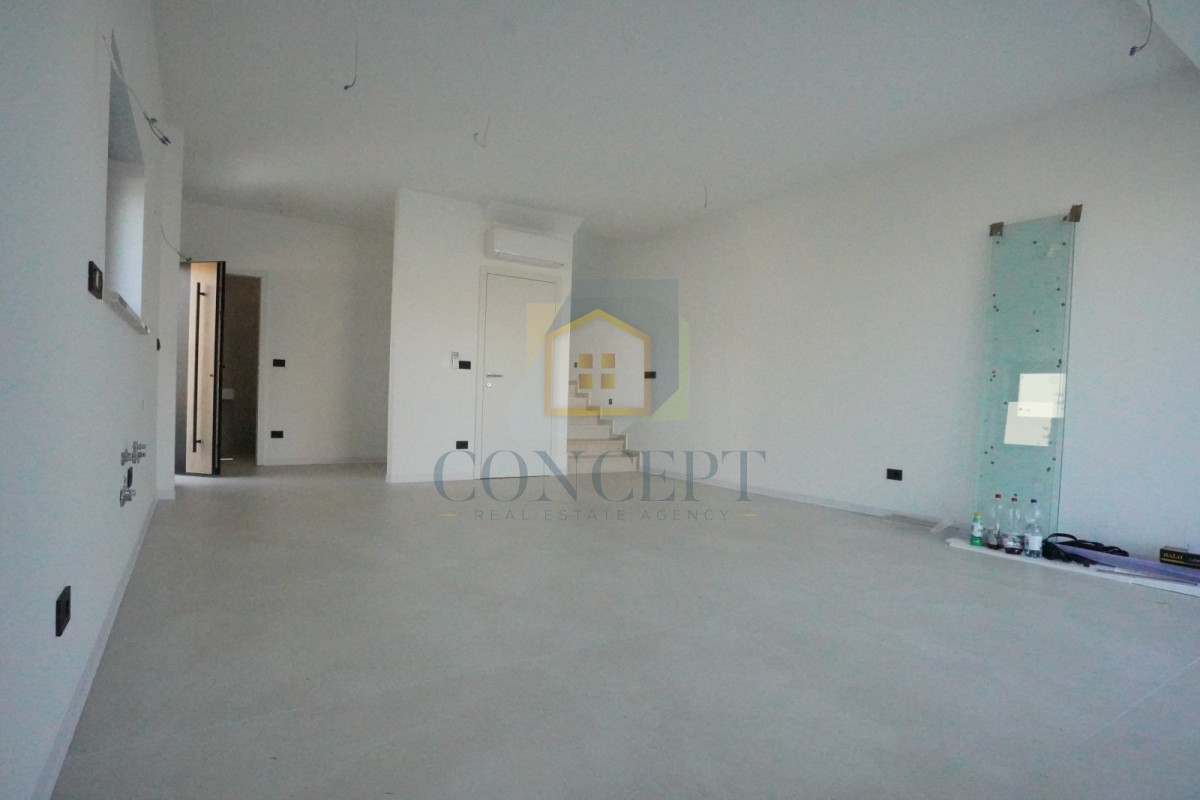 V mirnem delu naselja, le 850 metrov od morja, se prodaja hiša, ki se nahaja na koncu vrste, skupne neto površine 123,48 m², s pripadajočim dvoriščem površine 40 m².