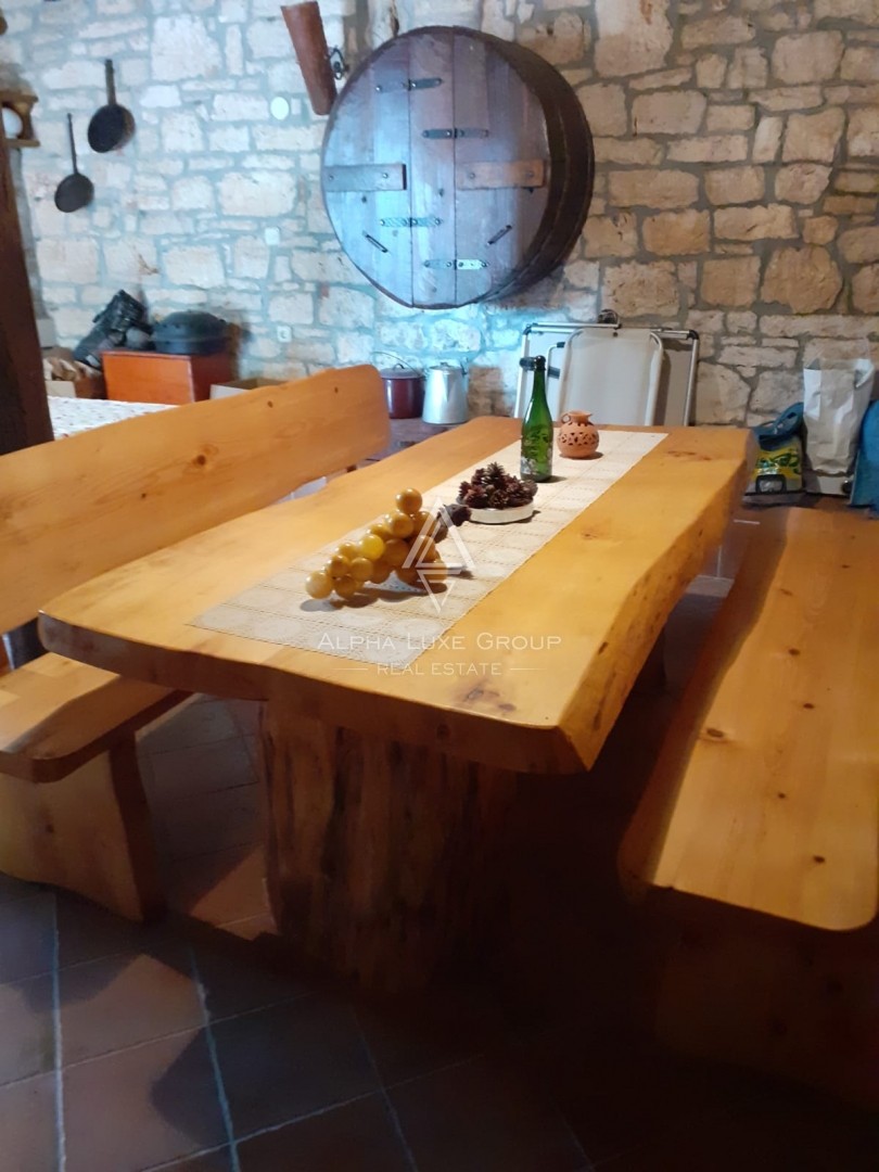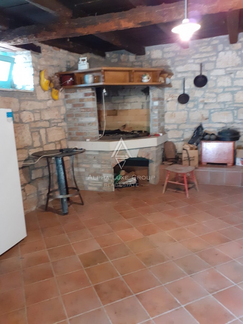 Hiša je opremljena s klimatsko napravo za hlajenje in ogrevanje, dodatno toplino pa zagotavljata kamin v taverni in tradicionalna peč na drva v kuhinji. Skupna površina zemljišča znaša 1.400 m² in vključuje več povezanih parcel, lepo urejeno dvorišče s starim vodnjakom, pokrito parkirno mesto ter poseben prostor za shranjevanje drv. Dodaten vrtni del je idealen za sprostitev, vrtnarjenje ali krajinsko oblikovanje.