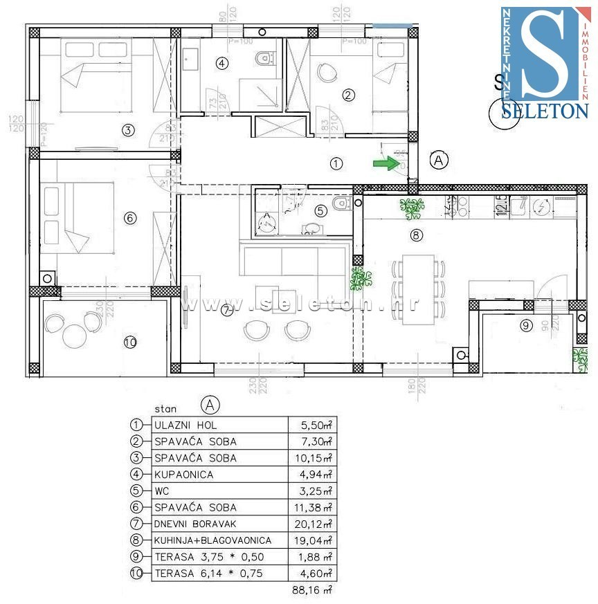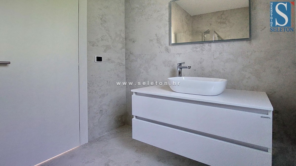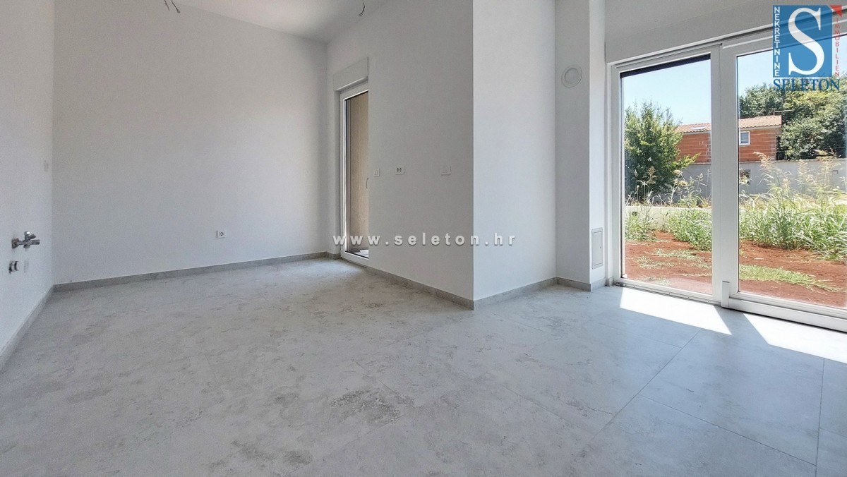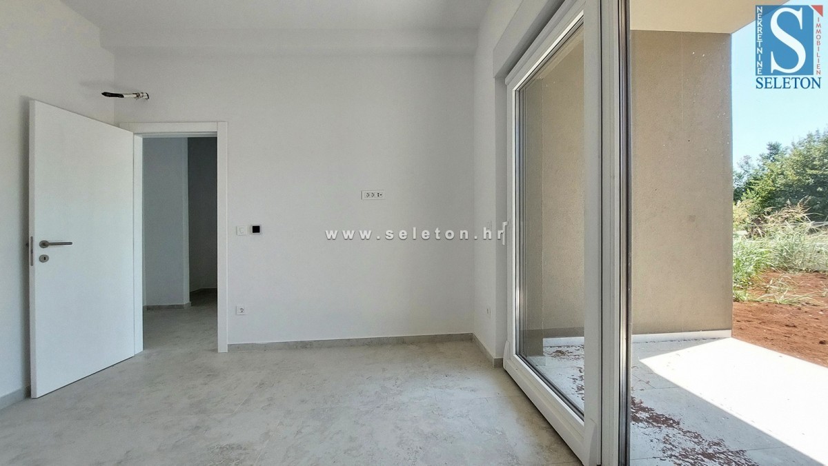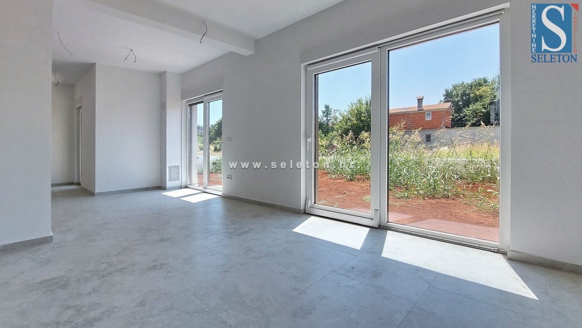Prodaja se novo stanovanje v okolici Poreča, površine 88,16 m², ki ga sestavljajo dnevna soba, jedilnica, kuhinja, hodnik, dve pokriti terasi, 3 spalnice, kopalnica in WC. Stanovanje se nahaja v pritličju stavbe z dvigalom, ima 2 parkirni mesti, talno ogrevanje v celotnem stanovanju, okna s tremi IZO stekli, komarnike na oknih, protivlomna vrata, pripravo za klimatske naprave in zasebni vrt cca 70 m². Stanovanje je oddaljeno približno 3 km od morja in 9 km od centra Poreča, v vasi so restavracije, kavarne in lekarna, supermarket pa je približno 1 km stran.
