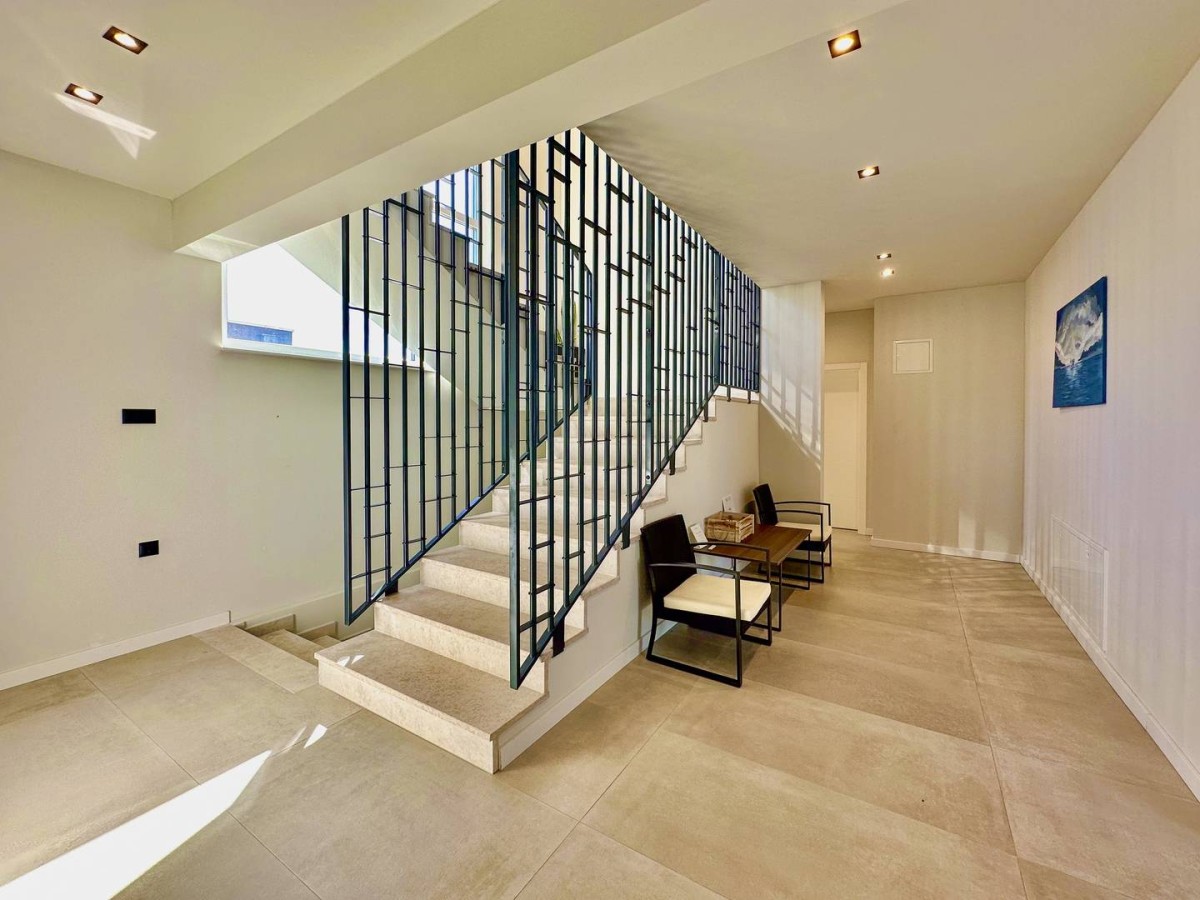 V zgornjem nadstropju so štiri spalnice, vsaka s svojo kopalnico in pogledom na morje. Vsi prostori so po meri oblikovani in prodajajo se popolnoma opremljeni.