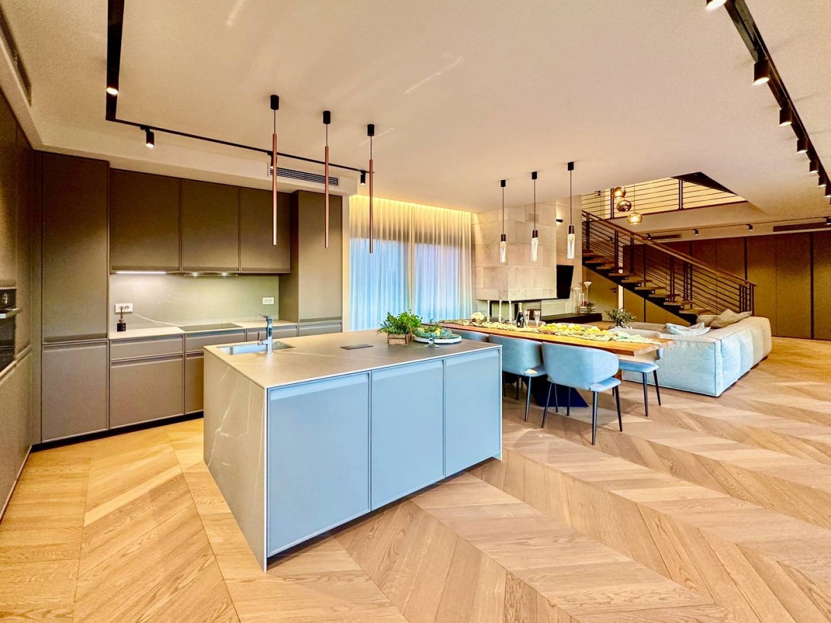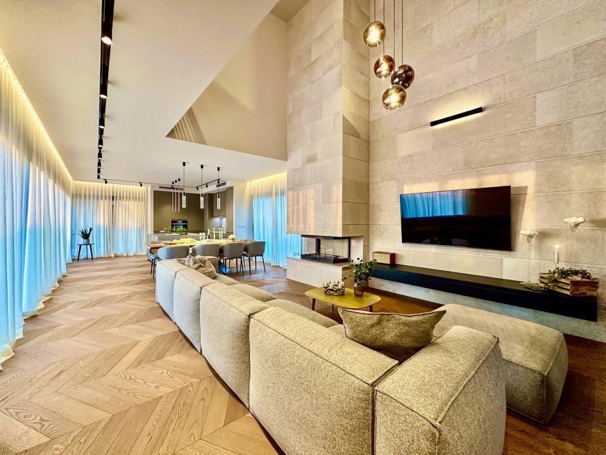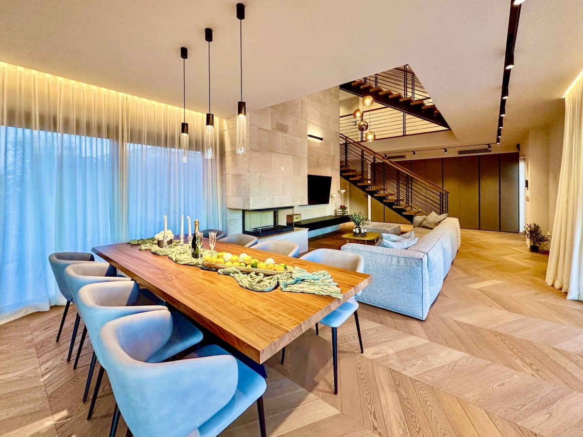 Notranjost vile izžareva prefinjenost in udobje – popolnoma je opremljena z oblikovalskim pohištvom priznanih italijanskih blagovnih znamk, skrbno izbranih za dosego harmonije estetike in funkcionalnosti.