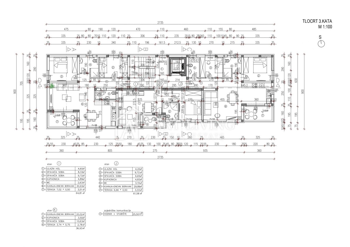 Stanovanje J se nahaja v 3. nadstropju stavbe in ima skupno površino 61,58 m².