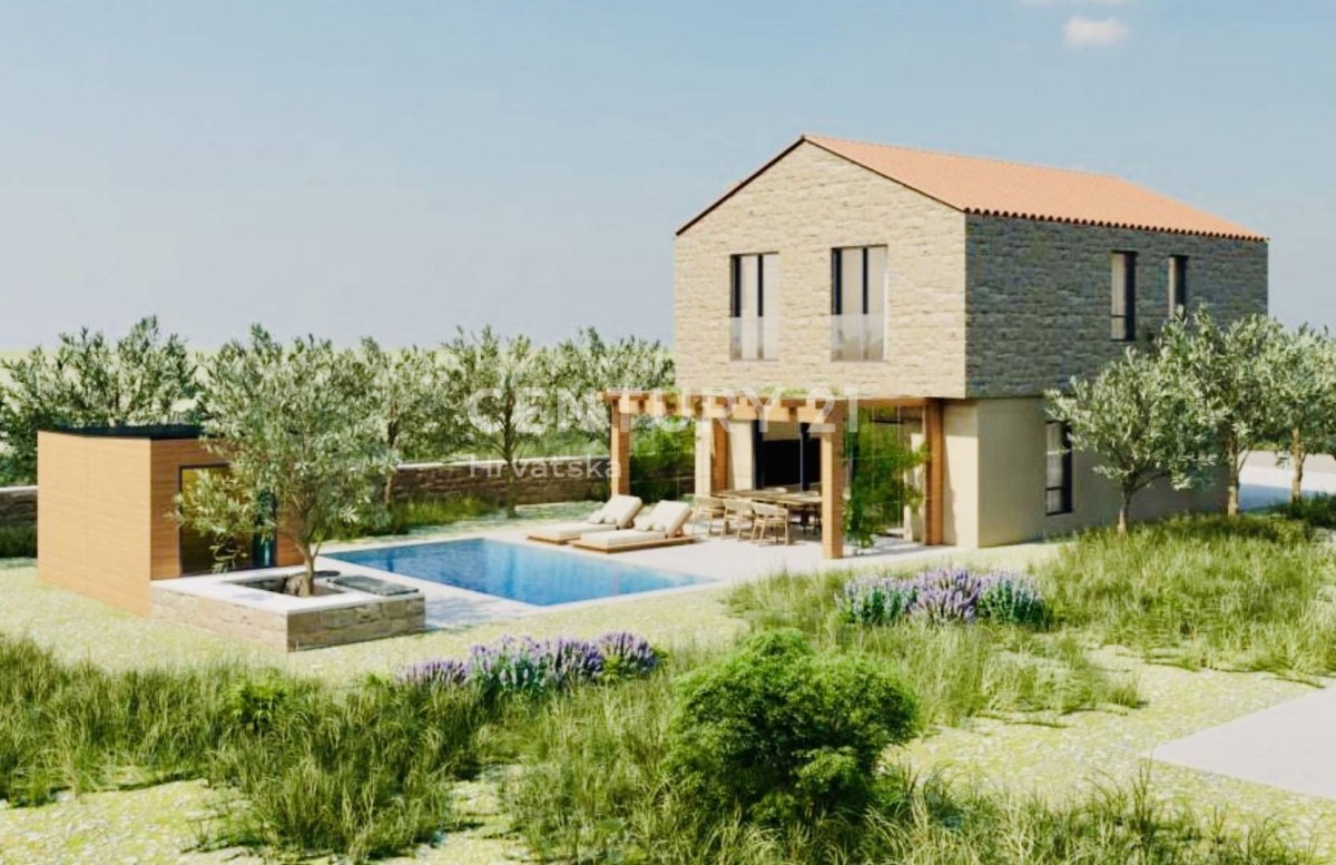 V avtohtoni istrski vasici v okolici Svetvinčenta prodamo gradbeno zemljišče s projektom za stanovanjsko hišo z bazenom in gradbenim dovoljenjem.