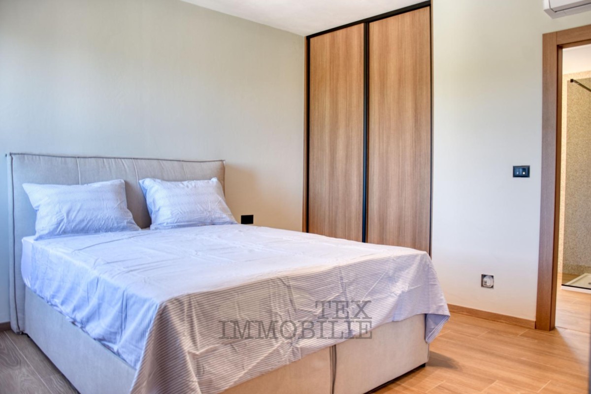 Zunanji del dopolnjuje bazen z letno kuhinjo poleg njega, ki je kot nalašč za uživanje v toplih poletnih dneh. Iz drugega nadstropja se odpira čudovit razgled na morje. Na dvorišču bo zagotovljen prostor za parkiranje dveh avtomobilov.