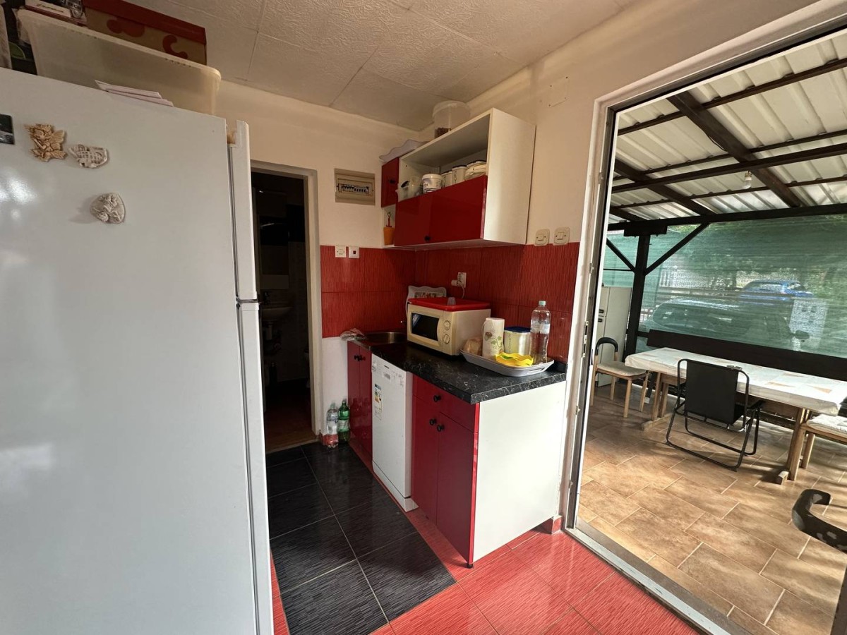 Prostor je zasnovan za prijetno bivanje in obsega kuhinjo z jedilnico in dnevno sobo, spalnico, kopalnico in veliko pokrito teraso, ki jo je delno mogoče zapreti in tako pridobiti dodatno spalnico.