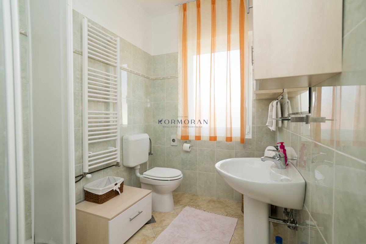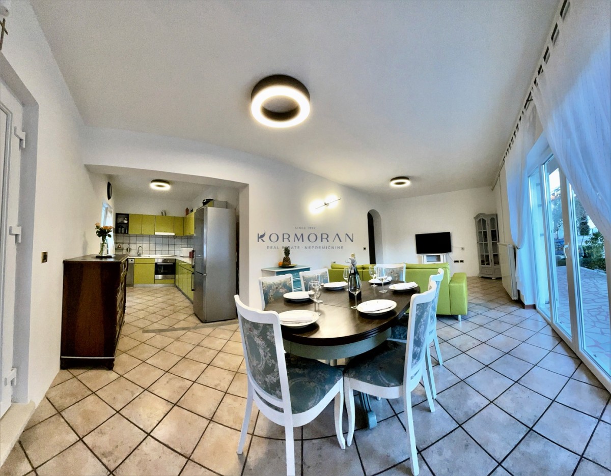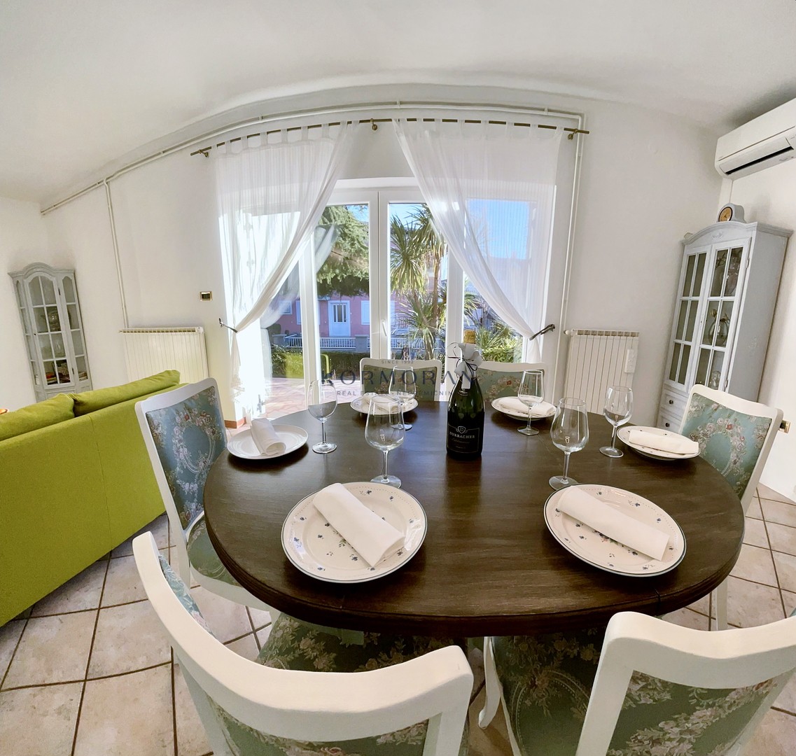 Samostojna družinska hiša se nahaja v mirnem naselju 300 m od prvih plaž in ima skupno 250 m2 ter dvorišče 400m2.