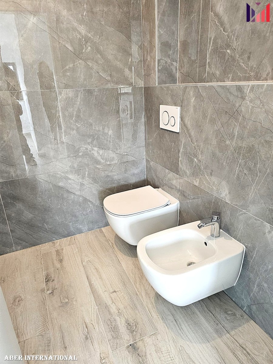 Stanovanje je zgrajeno z vrhunskimi materiali: kopalnica ima talno gretje, klimatska naprava je zagotovljena preko klimatskih naprav, nameščena so aluminijasta okna, električne rolete in komarniki. Stanovanju pripada eno parkirno mesto velikosti 12,50 m² ter shramba velikosti 7,55 m².