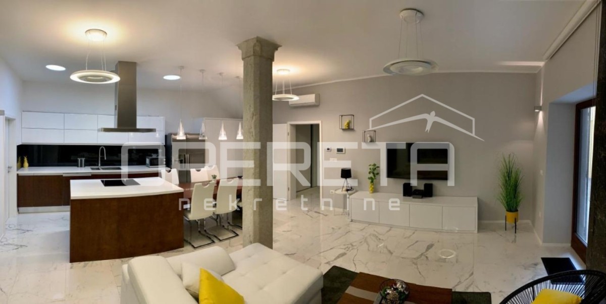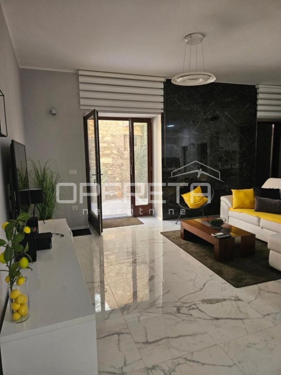 To luksuzno prenovljeno stanovanje v osrčju Poreča, ki se nahaja v prvem nadstropju in je le 50 metrov oddaljeno od morja, predstavlja pravo oazo elegance in udobja. S skupno površino 95 m2 z izhodom na zunanjo teraso in 30 m2 veliko dvorišče ponuja prostorno in funkcionalno razporeditev.