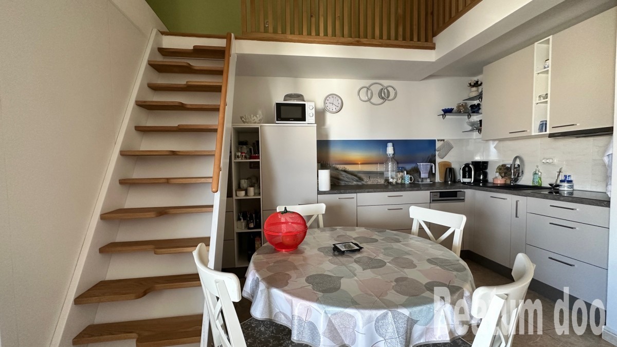 Dve spalnici, galerija z dvema posteljama, ena kopalnica, dnevna soba, kuhinja + jedilnica, velik balkon s pogledom na morje