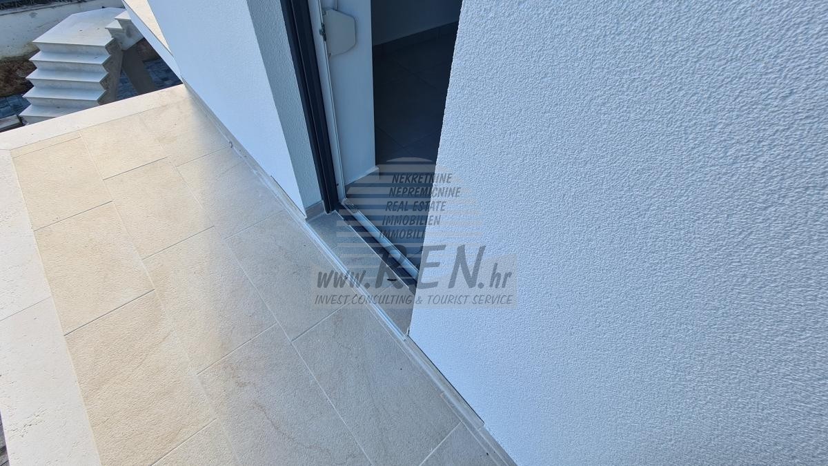 Stanovanje v okolici Umaga ima skupno 67,40 m2, nahaja se v prvem nadstropju, v izgradnji, oddaljeno je 5 min (400m) od morja in od prekrasne urejene plaže ter 10 min (4000m) od centra Umaga. Razdeljeno je na kuhinjo/dnevno sobo, kopalnica, 2 spalnice in teraso. Ogrevanje in hlajenje s klimatsko napravo. Pripada mu tudi parkirno mesto, klet in garaža.