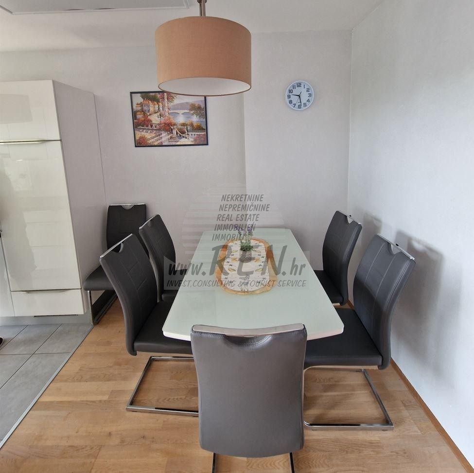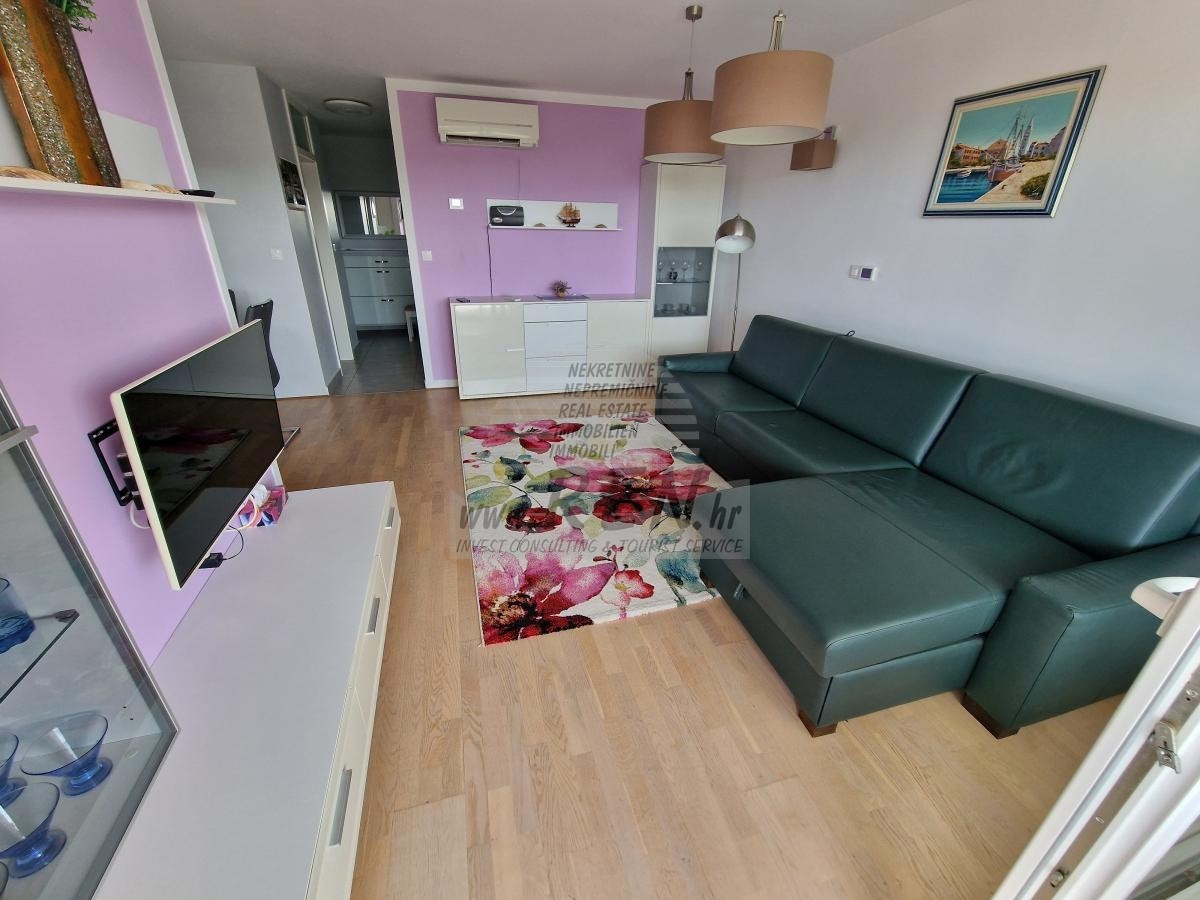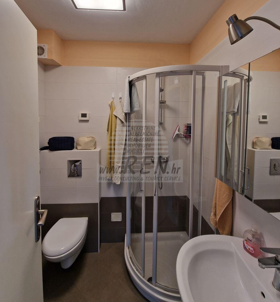 Stanovanje v bližini Umaga ima skupno površino 52,80 m2, se nahaja v drugem nadstropju, zgrajeno je bilo leta 2013 in je oddaljeno 5 min. (200m) od morja in urejene plaže, 10 min. (4000 m) oddaljen od centra Umaga. Stanovanje obsega kuhinjo z jedilnico, dnevno sobo, kopalnico, spalnico, hodnik, teraso. Opremljen je s klimatsko napravo, dvigalom, zasebnim parkiriščem in pogledom na morje. Prodaja se s pohištvom.