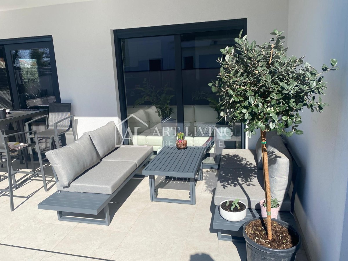 Naprodaj je moderna dvojna hiša, ki ponuja popolno kombinacijo funkcionalnosti, estetike in udobja, nahaja se v mirnem okolju, idealnem za bivanje ali turistični najem. Oddaljena je le 1300 metrov od centra in 2000 metrov od morja ter urejenih plaž.