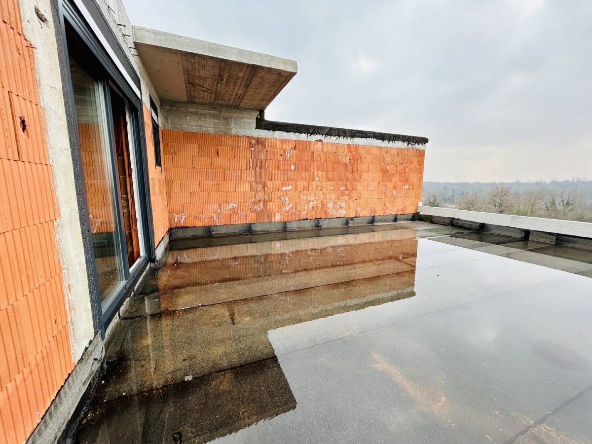 Ta prostorna hiša s tremi spalnimi prostori ima optimalno orientacijo proti jugozahodu, kar omogoča obilico naravne svetlobe skozi ves dan. Prostorna strešna terasa s površino 50 m2 ponuja možnost poletne kuhinje, jacuzzi cona in dvorišče vabita k sprostitvi na prostem, medtem ko pokrito parkirišče in dodatna shramba zagotavljata praktičnost in dodaten prostor za shranjevanje.