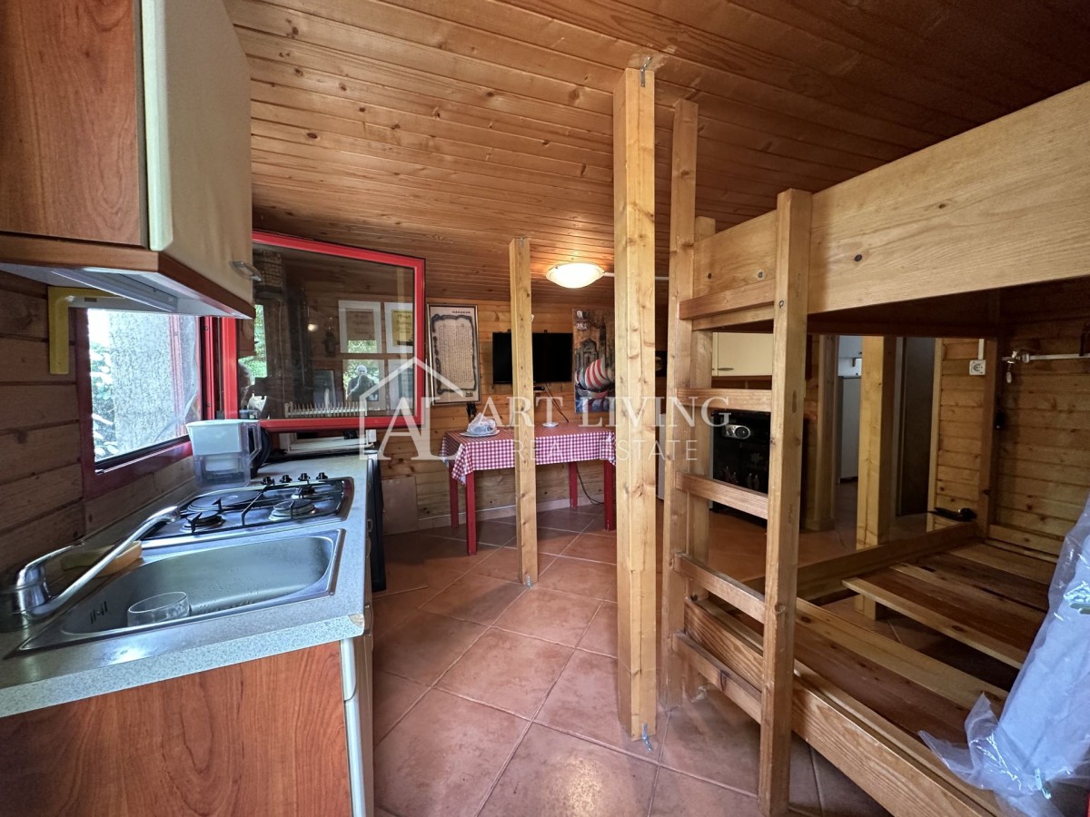 Hiša meri 40 m² in obsega dnevni prostor s kuhinjo in jedilnico, spalni del ter ločeno kopalnico.