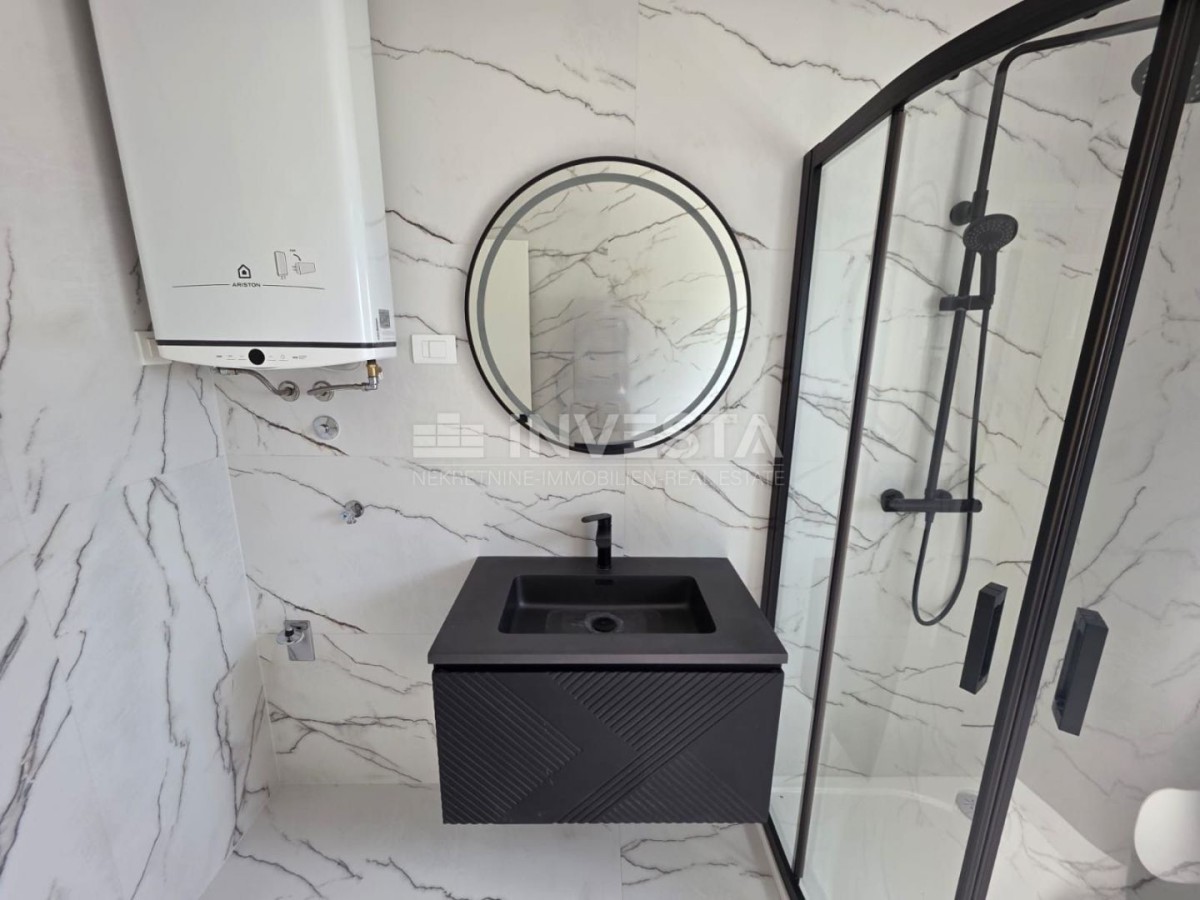 Stanovanje je opremljeno z moderno PVC stavbno pohištvo z aluminijastimi roletami in komarniki, vsaka soba ima klimatsko napravo ter talno ogrevanje z individualnim termostatom. Kakovostna keramika po celotnem stanovanju dodatno prispeva k prijetnemu in trajnemu ambientu.