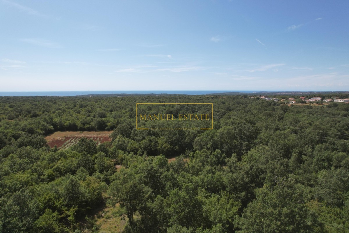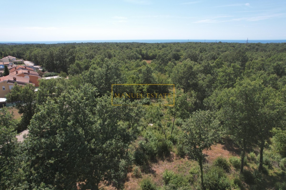 Gradbeno zemljišče v izmeri 840 m² se nahaja v mirnem stanovanjskem naselju v okolici Poreča. Parcela je pravilne oblike in leži na rahli vzpetini, s katere se z višine približno šestih metrov odpira odprt pogled na morje. Lokacija je idealna za gradnjo družinske hiše ali počitniške vile, saj nudi mirno okolje in hkrati bližino vseh bistvenih storitev za udobno bivanje.