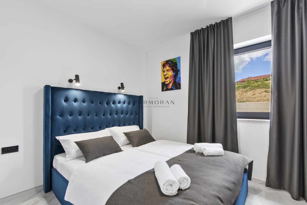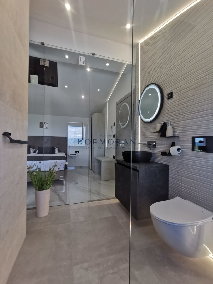 Znotraj same vile vas čakajo tri prostorne spalnice z udobnimi francoskimi posteljami, SMART TV in klimatsko napravo. Tri moderno opremljene kopalnice z WC-jem zagotavljajo zasebnost in luksuzen vtis.