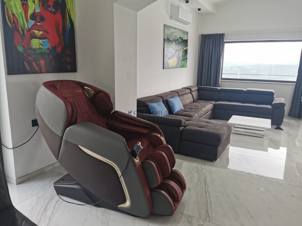Dnevna soba in jedilnica sta povezani v en velik odprt prostor, ki ustvarja idealno mesto za druženje in sprostitev. Prefinjen dizajn, udobno pohištvo in naravna svetloba, ki vstopa skozi velike steklene površine, ustvarjajo prijetno vzdušje za uživanje v trenutkih z vašimi najdražjimi.