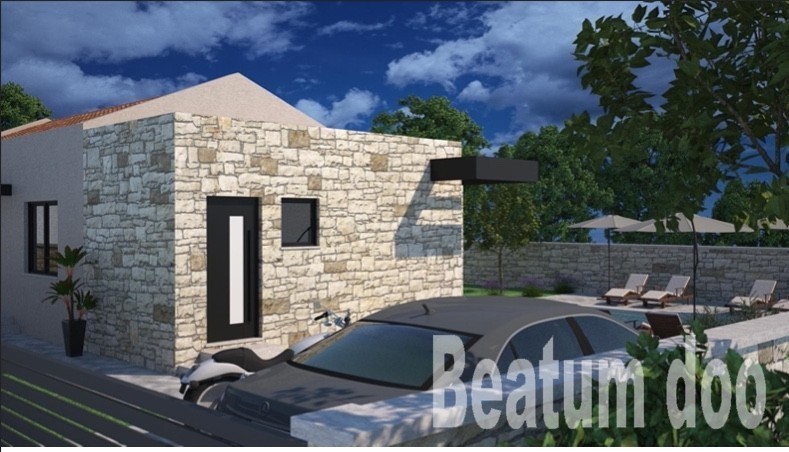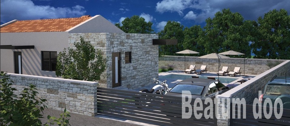 Projekt hiše predstavlja edinstveno in privlačno kombinacijo modernega in rustikalnega sloga.