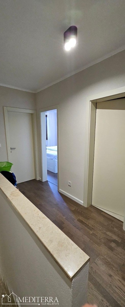 V zgornjem nadstropju so tri udobne spalnice in moderna kopalnica.