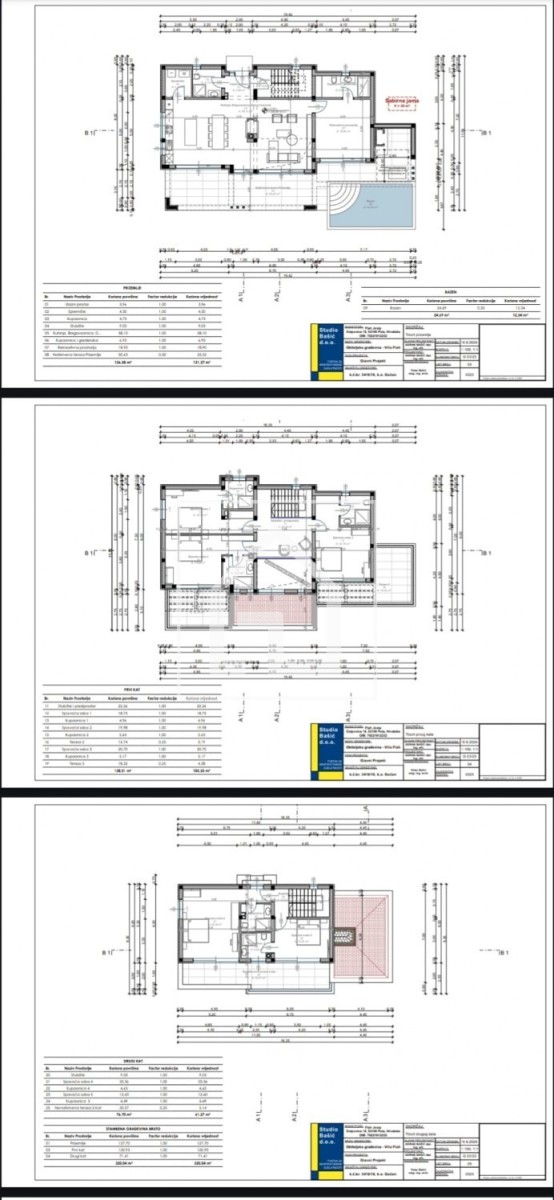1. nadstropje: 3 spalnice s kopalnico, od tega 2 s teraso (neto površina 128m2)