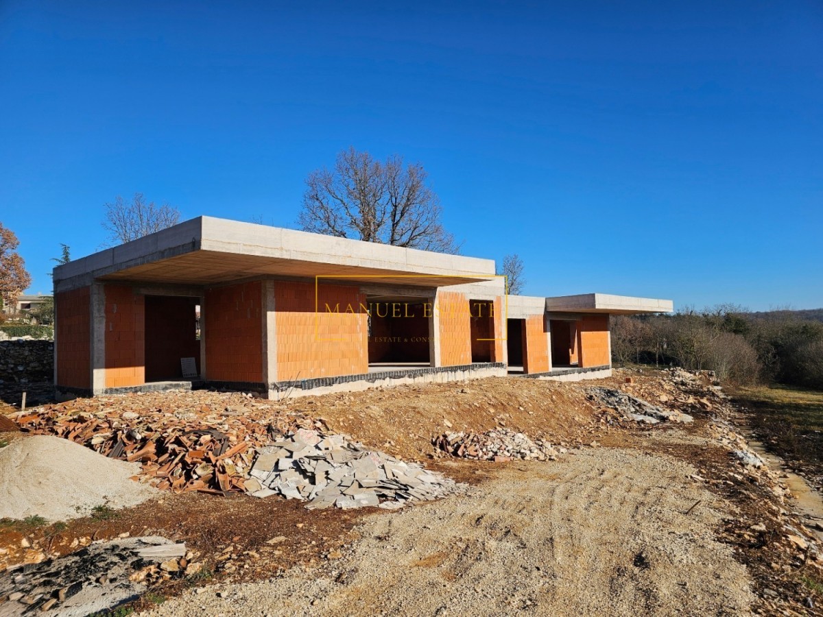 Huset med en total boyta på 85 m2 på en tomt på 550 m2 ligger i ett lugnt läge nära Tinjan, 21 km från Poreč. Huset är enplan och består av en hall, ett vardagsrum med kök och en matsal, två sovrum, två badrum, en toalett, ett förråd och en täckt terrass. Gården kommer att vara noggrant anlagd och i centrum av villans yttre del kommer en swimmingpool med solplats. Ytterligare funktioner: elektrisk golvvärme, luftkonditionering. Två parkeringsplatser. Huset säljs på nyckelfärdig basis. Pris: 300 000 euro. Havet och de första stränderna ligger cirka 21 km bort. För all annan information, kontakta oss gärna.