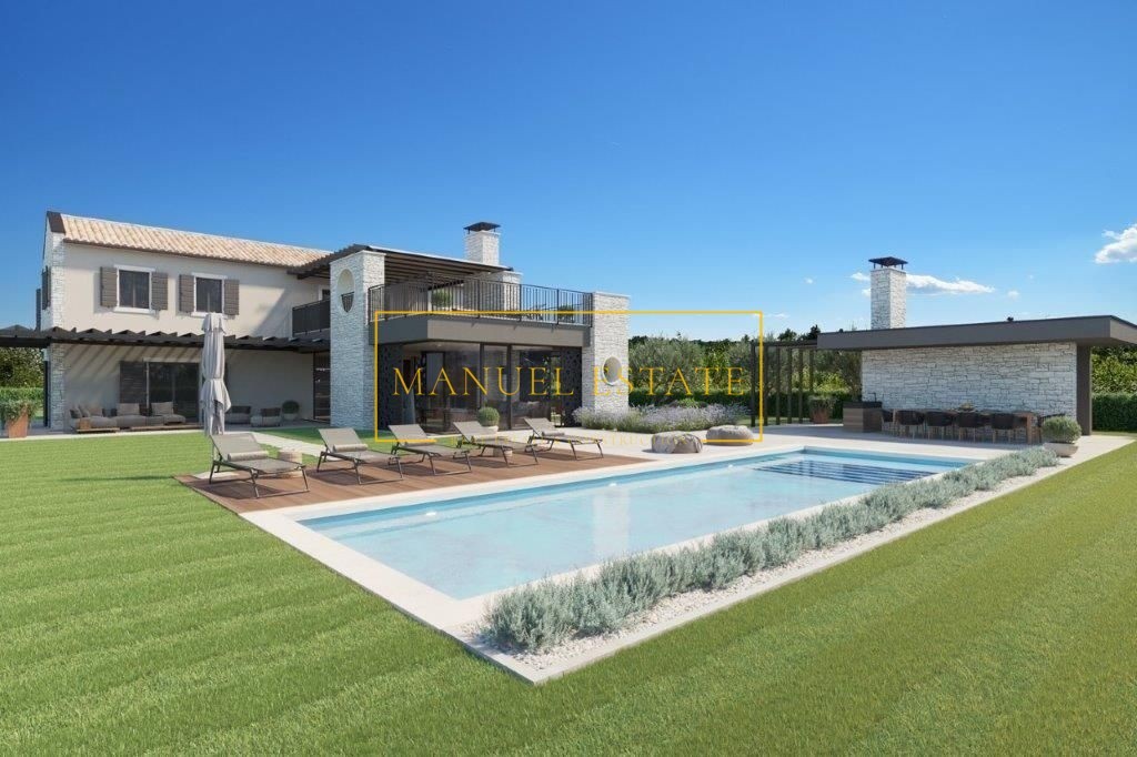 Modern villa på 230 m2, belägen i ett lugnt läge med utsikt över havet, nära Poreč, nära Vižinada, ca 13 km från havet och stadens centrum. Beläget på en tomt på 1600 m2, är villan fördelad på två våningar, består av ett rymligt vardagsrum med öppen yta, kök och matsal med tillgång till terrassen, 4 sovrum, 4 badrum, WC, på första våningen finns en terrass med jacuzzi. Golvvärme (värmepump), öppen spis, luftkonditionering. Det finns en 50 m2 stor pool med saltvatten i den omsorgsfullt anlagda trädgården. Täckt parkering med förråd (60 m2). Villan är idealisk för året runt boende eller för turistuthyrning.